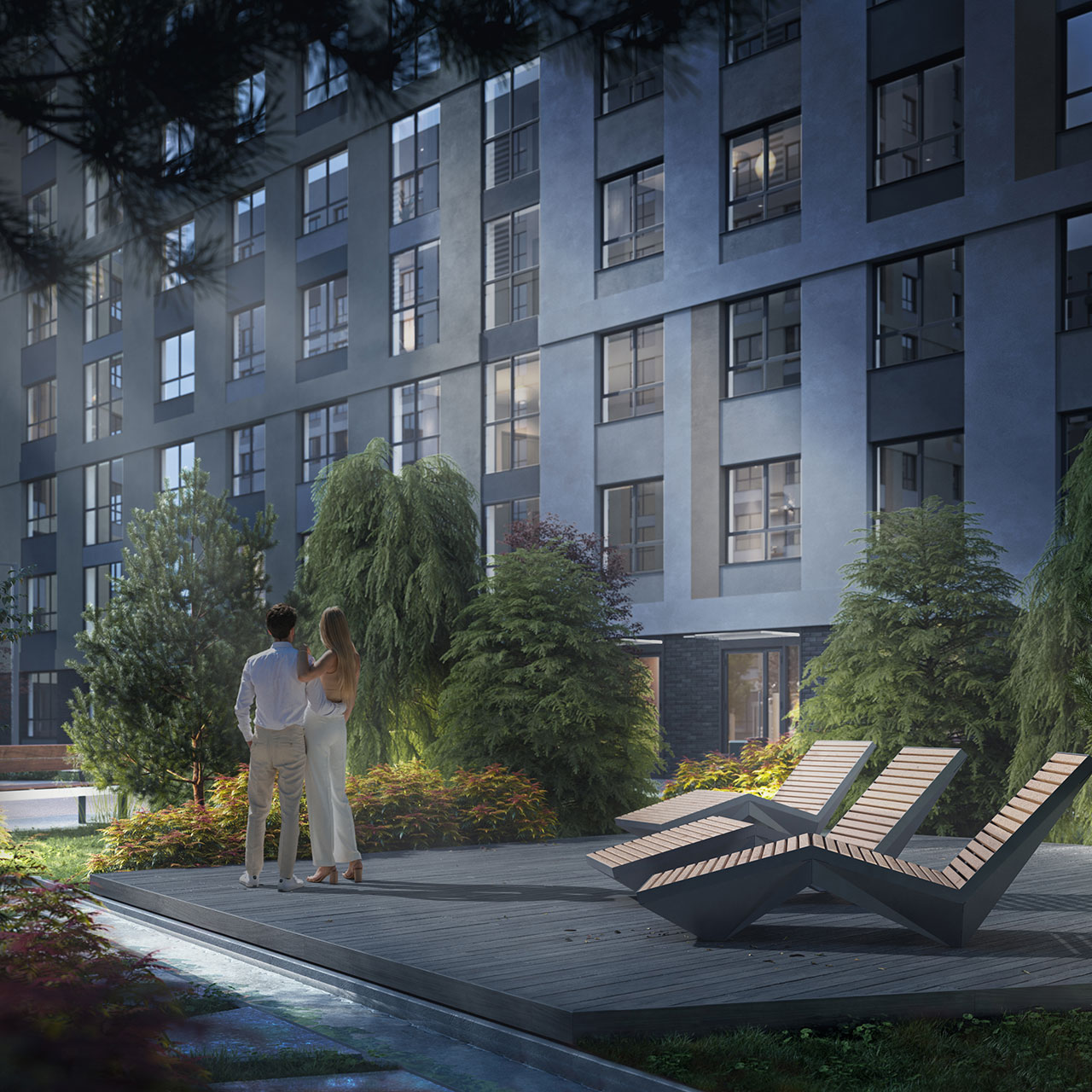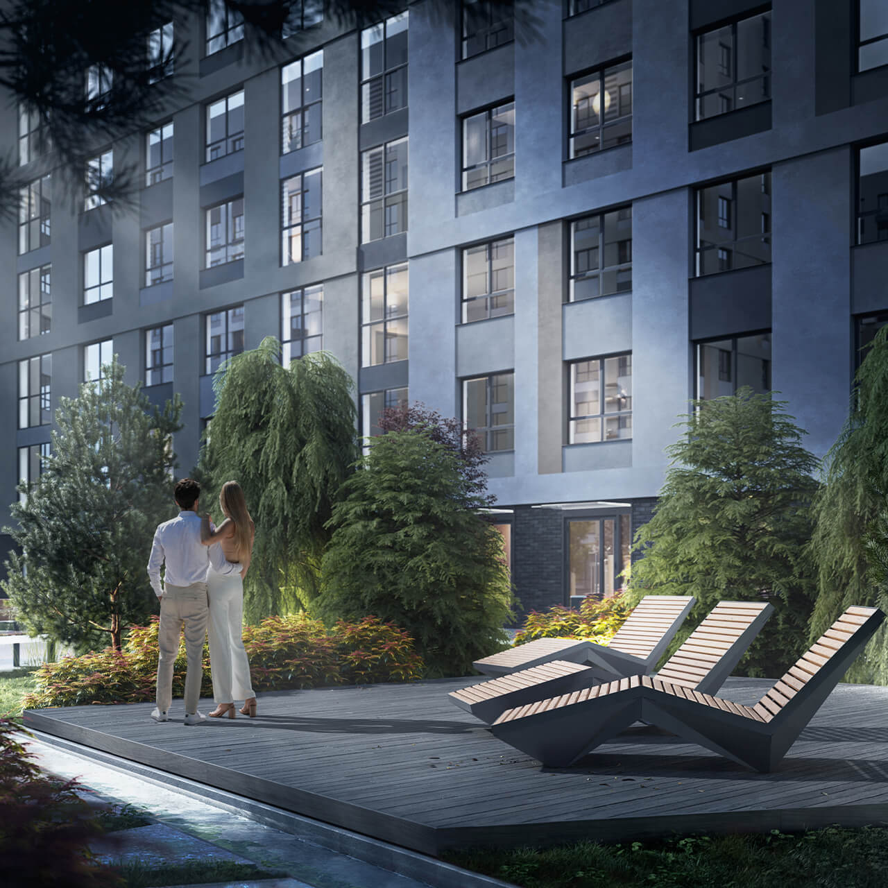 Внутренний двор выполнен по эксклюзивному дизайн-проекту.